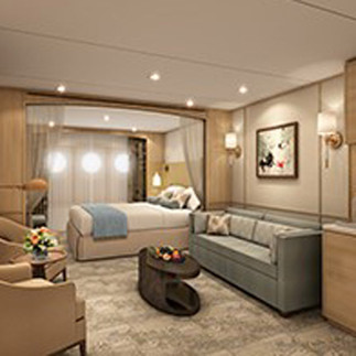Grand Owner's Suites Midship | The Owner's Suite Midship combines with the adjoining suite for a three-bedroom and three-bath suite totaling 1,374-square-feet. Bring your friends and share the suite like a villa, or luxuriate with just the two of you for accommodations as unique as your travels. There's no other suite like this at sea.