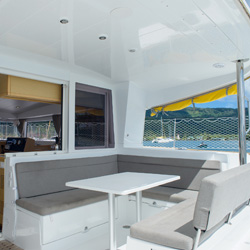 Sailing catamaran with a crew of three. English speaking skipper, guide and hostess/cook. 4 double cabins, 2 forward peaks for children and 4 toilet/showers. Air-conditioning, 220v generator, water maker, and nespresso machine.