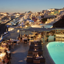Petra Restaurant is open all day to satisfy your refined taste. Celebrate the beginning of a new day and prepare yourselves for an exciting adventure in Santorini with a delicious, satisfying breakfast. At lunchtime, indulge in the finest Greek and Mediterranean dishes inspired from authentic traditional specialties and let those flavors blend with the shimmering sea that dominates the view. Dinner at the Petra Restaurant offers a sophisticated culinary experience with a choice of fresh fish or lobster in a romantic, candlelit ambience under the veil of stars. Petra Restaurant serves snacks and delicious cocktails all hours of the day until the pool closes.
