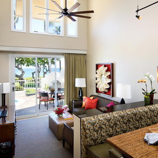Suites: One-bedroom suites offer a spacious 840 square feet of living space and private lanais (patios). Each of these distinctive Maui, Hawaii, accommodations features a living room with a queen sofa bed, full entertainment system including a DVD player and wireless high-speed internet access (Complimentary for Fairmont President's Club members). The large marble bathroom contains twin pedestal sinks, deep soaking tubs and a walk-in shower. A wet bar, microwave oven, coffee maker and compact refrigerator are also standard in all suites.