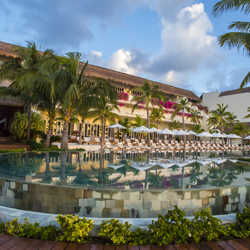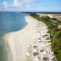 Situated along the white beaches of the Caribbean coast, the Grand Velas Riviera Maya redefines luxury in the All-Inclusive plan. Lush tropical jungle surrounds this resort that is 35 minutes away from Cancun International Airport (CUN) and five minutes away from Playa del Carmen.
