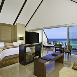 The resort is divided into three different ambiances. The adults-only section is designed for optimum privacy and relaxation; it features 90 high-end ocean-view suites with private plunge pools, in-suite massage areas and Jacuzzis. The family-oriented area of the resort has 195 suites with terraces, sitting areas and stunning views to the Mexican Caribbean. The Mayan jungle area has 254 furnished suites perfect for families, couples or business travelers due to their proximity to the Convention Center. All the 1000-plus, square-foot suites offer in-suite Jacuzzis, private terraces or balconies, mini bars, Nespresso coffee makers, Wi-Fi, L’Occitane toiletries, daily turndown service, 24-hour suite service and personal concierge service. Ambassador Pool Suite - Ocean Front allows you to experience a dream vacation with your family in a heavenly, spacious environment. Enjoy the tranquility of the Mexican Caribbean from the comfort of your private ocean front plunge pool and terrace, where you can watch the sun set each day.