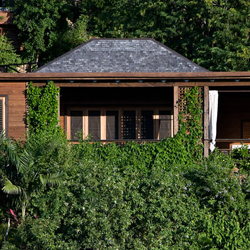 Accommodations at Hermitage Bay consists of 25 individual cottages that begin on the edge of the beach and spread discreetly up the hillside as if "carved out of nature." In keeping with the resort philosophy, each has been constructed with purpleheart, greenheart, and other woods harvested from sustainably managed forests in Guyana. All rooms feature open floor plans, outdoor showers, and screened louvres in place of glass doors and windows. Each suite faces the sea, the views vary from tranquil tropical gardens and a white sand beach to spectacular panoramas of the bay, natural mangroves and a distant harbor. The décor is simple and unassuming; pristine white Italian linens, plush ivory cushions and light, textured walls soften the rich hues of the floorboards, large, comfortable furniture and vaulted ceilings. Deluxe amenities complement the rooms’ naturally beautiful, rustic charms. Elegant, mesh canopies adorn king size beds draped in luxurious Italien linens by Rivolta Carmignani. There are Green and Blacks chocolates in the mini-bars and Aromatherapy Associates bath soaps on the oversized, freestanding bathtubs. For your convenience and comfort, rooms are also equipped with an iPod docking station, 26" flat screen TV, DVD player, Wi-Fi and air-conditioning.