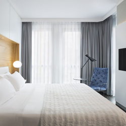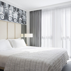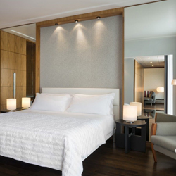 Premier Suite is brilliantly luminous with contemporary appointments, and allows you to unlock chic in the eternal city at Le Méridien Visconti Rome. Be inspired by Fifties era design and experience absolute comfort in the city of La Dolce Vita in this suite. With a charmed ambiance that brings to life the room’s unique style, this suite comes with two LCD TVs, two bathrooms and space ideal for four guests making the suite ideal for families or long-term stays. Terrace Suite combines eternal chic and contemporary elegance to create a heavenly escape in the ancient city in this suite. Situated on the top floor, soak up the Roman sun on your own private balcony while gazing over life on the wide leafy streets of Rome’s fashionable Prati district. Feel privileged in this generous suite offering luxury space consisting of one spacious bedroom, a luminous living area and a luxurious bathroom embellished with Italian marble and fitted with a shower and a bath. Discover a new perspective on Rome in this suite.