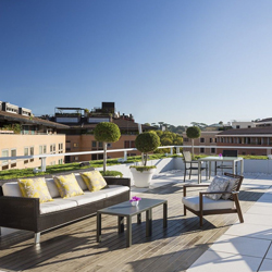 Each room features Wi Fi access, a safety deposit box, a phone, air conditioning, a minibar, coffee and tea making facilities, bathrobe and slippers, an LCD flat screen TV, and floor to ceiling windows. Executive Rooms allow you to live luxuriously in the Italian capital on the fifth or sixth floor. These rooms are inspired by La Dolce Vita and through their design, capture the retro mood of the era. Stylish, fresh and created with the digital traveler in mind, these rooms are the perfect place to stay for business and leisure. With floor to ceiling windows allowing for brilliantly luminous spaces, these rooms offers functionality and are equipped with all the technological features a digital traveler would expect.