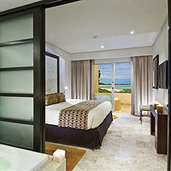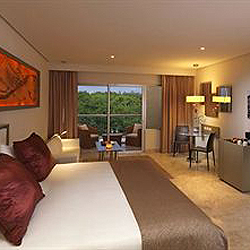 Paradisus Playa del Carmen La Esmeralda features 512 elegantly-appointed suites, including 56 swim-up suites, the most of any resort in Mexico. All rooms feature: 40" Flat Screen with cable TV, CD/DVD player, daily-stocked mini bar, coffee maker, individually controlled air conditioning, living area with sofa, iron and ironing board. The signature Family Concierge suites feature personal service and luxuries right-sized for everyone in the family. Let the attentive Family Concierges take care of your every need. In addition to the features above, Family Concierge rooms also include: a private air-conditioned Family Concierge lounge for private check-in/out and complimentary Internet access; all-day assistance of a Family Concierge, and a complimentary walkie-talkie or cell phone for instant communication; kids and teens activity menu; kid-sized bathrobe and mini-slippers in the closet; kid's bathroom amenities such as mini kit with soaps, toothbrush, shower gel, mosquito repellant, and towel; in-room activities menu; kid's drinks in the minibar; kid's pillows, nightly turndown with milk and cookies, bathrobes and slippers for the parents; pillow menu for the parents; luxury bathroom amenities for the parents; access to the exclusive Family Concierge restaurant for a la carte dining, Jacuzzi on the terrace.
