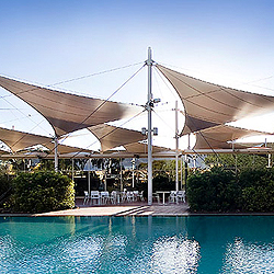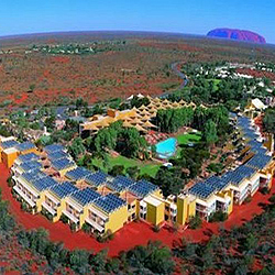 Named after the soaring white sails that crown its roof, this is Voyages Ayers Rock Resort's premium hotel. The interior decor focuses on Aboriginal heritage and culture, with a gallery in the lobby and significant artworks featured throughout the public areas and in the private rooms. Slip into comfort right in the heart of the central Australian outback at Voyages Sails in the Desert Hotel. Relax in beautifully appointed rooms, enjoy a cocktail in the lovely grounds, or sit back and relax under the magnificent white sails.