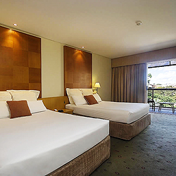 Each guestroom features complimentary Wi Fi access, a minibar, tea and coffee making facilities, heating and air conditioning, HDTV with complimentary air channels, in suite bathroom with complimentary amenities, luxury robes, and a blow dryer, an iron with ironing board, a safety deposit box, interconnecting and family room configurations, and accessible rooms. Terrace Rooms offers tyle and comfort from within flows onto the terrace that begs you to stretch out on the lounge under the towering white gums. Rooms are configured with two queen size beds for a maximum of four guests or one king size bed to which a roll-away bed can be added.