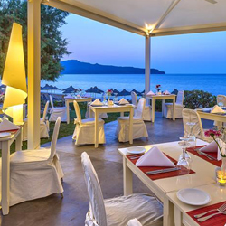 Santa Marina Beach Hotel offers its valued guests the traditional Cretan Night event hosted in the main restaurant. Live music accompanied by Greek/ Cretan dancers will entertain you with traditional son and dance while you enjoy your buffet dinner (traditional Cretan dishes). It is a night filled with good food, music and entertainment for guests' enjoyment. The a la carte Azzuro Restaurant offers many Cretan and international dishes (appetizers, salads, pasta dishes, pizza, burgers, toasted sandwiches, omelets, risotto, several meat/chicken/fish main dishes and desserts). It is an exclusive restaurant and pre-booking is necessary, due to limited seating. Azzuro is situated at edge of the outdoor terrace beside the sea with views of the Thodorou islet. The Main Bar at Santa Marina Beach Hotel is open daily and is located at the beach complex, with indoor and outdoor seating, just steps from the beach. Offering fine drinks combined with good music, The Main Bar makes for the perfect ending to a long day. Professional service in a friendly environment combined with beautifully maintained gardens - simply adds pleasure to your stay. The Outdoor Bar at the beach complex has ample seating and serves refreshments and snacks all day long. The Pool Bar located at the pool complex serves refreshments and snacks while guests enjoy time swimming and sunbathing.