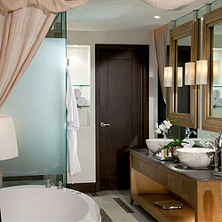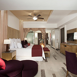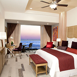 The resort boasts 271 spacious suites, most with stunning ocean views. Amenities include: King or two double beds • Air-conditioning with individual control • Secrets box for private room service delivery • Hair dryer • Turn down service • Daily refreshed mini bar with soft drinks, juices, bottled water and beer • Alarm clock • Iron & ironing board • Electronic safe • Satellite cable TV • DVD player • Desk with phone extension & internet access • Bathroom with shower and Jacuzzi • Electronic key • 24-hour room service • Slippers and bathrobes • Scale • iPod dock • Vanity mirror • Armoire. Preferred Club amenities include: Private Preferred Club Lounge • Preferred Status and Amenities • Concierge service • Daily continental breakfast service in the lounge • Afternoon hot and cold hors d’oeuvres; exquisite desserts, and fine liquors in the lounge • Complimentary newspaper (English or Spanish) • Complimentary internet access in suite (with your own laptop) • Complimentary computer access in Preferred Lounge • Upgraded mini-bar service • Upgraded bath amenities • Books, DVD’s and CD’s available.