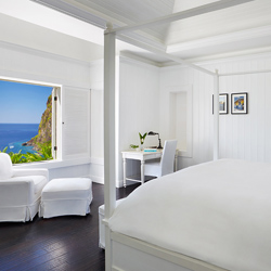 Three Bedroom Luxury Villa Residences include an upper level that houses the master bedroom with private balcony, large master bath with claw foot tub and views over the crystal Caribbean. One guest bedroom includes twin beds and ensuite shower room. Downstairs is a full kitchen, large living room opening to a beautiful deck and infinity edge pool, and the second guest room with queen size bed and ensuite shower room. One and Two Bedroom Residences offer large private pool with stunning ocean and Piton views, providing a true home from home experience with fully fitted kitchens, opulent living areas and a large sun terraces to provide true indoor/outdoor Caribbean living. Three and Four Bedroom Residences additionally include four poster beds.