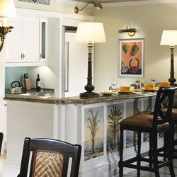 Junior Suites offer a private balcony/terrace with separate sitting area, a full-size sleeper sofa, as well as a kitchenette with microwave and mini-refrigerator. One Bedroom Suites are meticulously-designed, spacious 1,500 square foot one bedroom guestroom featuring one and a half luxury bathrooms, large private balcony/terrace with sun-loungers, a living cum dining room with sleeper sofa and a full kitchen with professional-quality appliances. Two Bedroom Suites boast a generous 2,000 square foot suite with master bedroom with king-sized bed, a second bedroom with king-sized bed and full-size sleeper sofa, two and a half bathrooms, two private balconies, a living/dining room with an additional sleeper sofa, as well as a full gourmet kitchen featuring professional modern appliances. Three Bedroom Suites features a master bedroom with king-size bed, while the two additional bedrooms have king-size beds and full-size sleeper sofas for maximum flexibility, three and a half bathrooms, three large private balconies with sun loungers and a living/dining room with yet another sleeper sofa offer sumptuous space for guests looking for additional relaxation room. The full kitchen with high-end modern appliances and a washer/dryer add to the suite’s attractive residential feel. Penthouse Suites contain a master bedroom featuring a king-sized bed, a luxurious ensuite and its own private outdoor Sun Suite with a spa tub and outdoor shower for the ultimate pampering experience. Second and third bedrooms come with a king-size bed and full-size sleeper sofa, while the gourmet kitchen boasts a range of professional modern appliances.