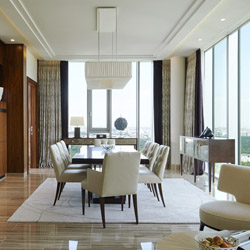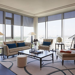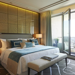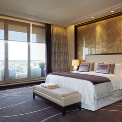Presidential Suite is Berlin’s highest suite which boasts a luxurious 2,799 square feet expanding over the 31st floor and showcasing panoramic windows from every corner. From the master bedroom and the living room to the guest bathroom, Berlin is at your feet. You can arrange for a complimentary limousine service from the airport. Relax on the luxurious furniture and marvel at exquisite furnishings such as a grand piano, fireplace and specially-designed porcelain from the Royal Porcelain Manufactory Berlin. Guests in the Presidential Suite enjoy complimentary Wi Fi access. The suite also features two bedrooms with in suite bathrooms. The master bedroom features a double bed, while the second bedroom has two single beds. Enjoy a private entrance, small kitchen, two balconies, separate office and service access. Twin Ambassador Suite offers a luxurious hideaway with a private balcony and endless views of Berlin through partly opening panoramic windows. This Twin Ambassador Suite is on the 30th floor and includes enhanced safety with separate suite lifts. The separate living and dining area features a dining table for six guests and fully equipped small kitchen. The suite also has a Nespresso coffee machine and two 40-inch TVs with Apple TV® technology. Enjoy the comfort of a chaise lounge, dressing table with lighted mirror and twin Waldorf Astoria Signature beds. The marble bathroom is accessible from two sides and has a separate shower and toilet, under-floor heating, in-mirror TV, and guest toilet.