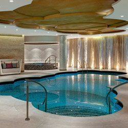 Guerlain Spa at Waldorf Astoria Berlin offers guests the opportunity to enjoy hotel spa treatments featuring the exclusive Guerlain beauty products. Treatments developed from the 200-year tradition of this renowned French cosmetic brand are combined with innovative concepts for the ultimate spa experience. The 10,000 square foot spa is located on the fifth floor and includes six therapy rooms, a cloud-shaped pool, hot tub, sauna, steam room, terrace, a five-sense hydrotherapy Vichy shower and a 24-hour fitness center.